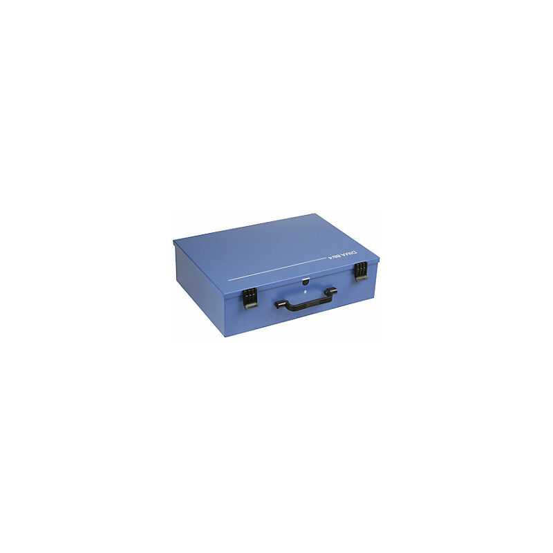 Valigetta in lamiera d'acciaio per minuteria, cassette modulari incl., alt. x lungh. x largh. 133 x 472 x 340 mm. Fornitura = montato. Materiale = lamiera d'acciaio, verniciata a polvere, lamiera d'acciaio, materiale espanso interno. Lunghezza esterna = 472 mm. Larghezza esterna = 340 mm. Altezza esterna = 133 mm. Colore = blu chiaro RAL 5012. Peso = 6.96 kg. Versione = 1 fondo estraibile incl. Numero scomparti = 36 pz. Modello cassettine = 8 pz. 62x83x117 mm, 16 pz. 62x83x57 mm, 4 pz. 62x167x117 mm, 8 pz. 62x83x117 mm. Lamiera d'acciaio spessa 0,75 mm, verniciatura a polvere in blu chiaro RAL 5012. Cerniera a tutta larghezza. Impugnatura ergonomica e chiusure in plastica. Blocco di sicurezza centrale contro l'apertura involontaria. Materiale espanso nel coperchio. Valigetta portaminuteria con cassette modulari.
