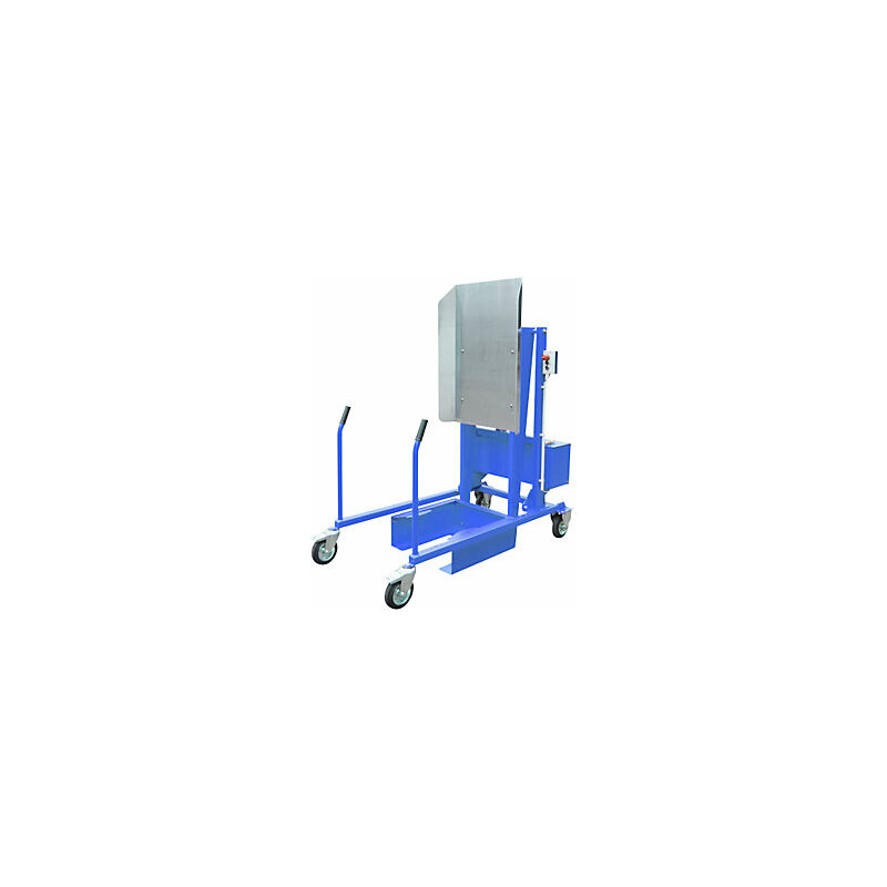 Dispositivo per il ribaltamento di cassonetti, elettroidraulico 12 V, blu chiaro. Fornitura = montato. Lunghezza totale = 1570 mm. Larghezza totale = 880 mm. Altezza totale = 1720 mm. Superficie = verniciatura. Colore = blu chiaro RAL 5012. Per cassonetti da 120 o 240 l. Altezza di scarico ca. 1480 mm. Angolo di ribaltamento fino a 135°. Per lo svuotamento e la pulizia di cassonetti da 120 o 240 l. Angolo di ribaltamento fino a 135°, altezza di scarico ca. 1480 mm. 2 rotelle pivottanti e 2 rotelle a supporto fisso in gomma piena, Ø 180 mm, di cui 2 rotelle pivottanti con fermo, altezza d'ingombro 220 mm. Azionamento elettroidraulico 12 V (senza caricatore).
