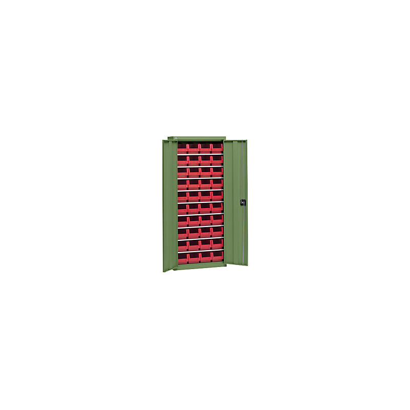 Armadio portamateriale con cassettine, altezza 1575 mm, 9 ripiani, verde reseda. Fornitura = montato. Altezza = 1575 mm. Larghezza = 670 mm. Profondità = 260 mm. Materiale = lamiera d'acciaio. Superficie = verniciatura a polvere. Portata totale = 300 kg. Numero ripiani = 9 pz. Materiale ripiani = lamiera d'acciaio, zincata. Portata per ripiano = 30 kg. Passo di regolazione altezza ripiani = 16 mm. Cassettine numero / lungh. x largh. x alt. = 40 x rosso / 230x150x125 mm. Materiale cassettine modulari = polipropilene. Colore corpo = verde reseda RAL 6011. Colore porta = verde reseda RAL 6011. Tipo di porta = anta a battente. Serratura = maniglia girevole e serratura di sicurezza con doppio chiavistello. Numero cassette = 40 pz. Peso = 53.48 kg. In tre altezze. Cassettine in colori assortiti in polipropilene di alta qualità. Verniciatura a polvere antiabrasione ed ecologica. Corpo Robusta e resistente struttura in acciaio. Verniciatura a polvere ecologica e antiabrasione. Ante Con