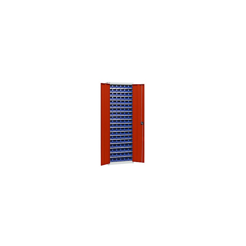Armadio portamateriale con cassettine, altezza 2000 mm, 18 ripiani, grigio chiaro / rosso traffico. Fornitura = montato. Altezza = 2000 mm. Larghezza = 670 mm. Profondità = 260 mm. Materiale = lamiera d'acciaio. Superficie = verniciatura a polvere. Portata totale = 380 kg. Numero ripiani = 18 pz. Materiale ripiani = lamiera d'acciaio, zincata. Portata per ripiano = 30 kg. Passo di regolazione altezza ripiani = 16 mm. Cassettine numero / lungh. x largh. x alt. = 114 x blu / 164x105x75 mm. Materiale cassettine modulari = polipropilene. Colore corpo = grigio chiaro RAL 7035. Colore porta = rosso traffico RAL 3020. Tipo di porta = anta a battente. Serratura = maniglia girevole e serratura di sicurezza con doppio chiavistello. Numero cassette = 114 pz. Peso = 73 kg. In tre altezze. Cassettine in colori assortiti in polipropilene di alta qualità. Verniciatura a polvere antiabrasione ed ecologica. Corpo Robusta e resistente struttura in acciaio. Verniciatura a polvere ecologica e