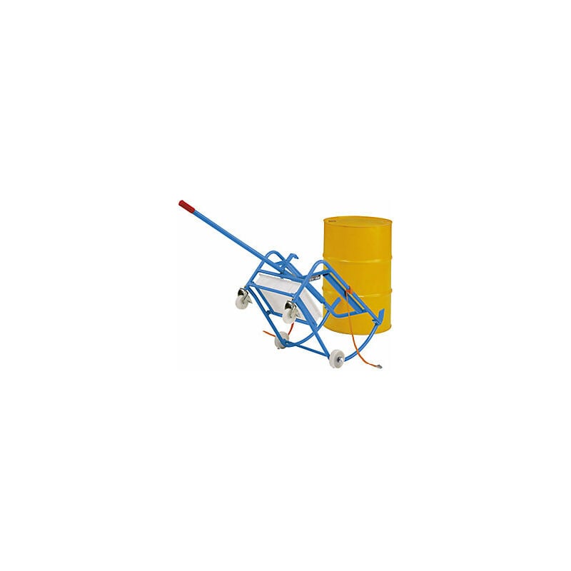 Ribaltatore per fusti da 200 litri, supporto per fusti con 2 rulli metallici, con vasca di raccolta olio. Fornitura = montato. Colore = blu chiaro RAL 5012. Materiale = acciaio, verniciato a polvere. Versione ribaltatore per fusti = con vasca di raccolta olio da 10 litri. Larghezza telaio = 630 mm. Altezza telaio = 570 mm. Lunghezza telaio = 1000 mm. Culla per fusti = 2 rulli in metallo lunghi 500 mm. Per dimensioni contenitore = 200 l. Per diametro fusto da - a = ~ 580 mm. Versione ruote = poliammide. Dotazione ruote = 2 rotelle pivottanti con fermo, 2 ruote. Diametro rotelle pivottanti = 100 mm. Diametro ruote assiali = 125 mm. Portata = 230 kg. Tipo di prodotto = ribaltatori per fusti. Per fusti da 200 l, conformi a DIN 6643 M1 e M2. Per sollevare, immagazzinare e svuotare i fusti. Cinghia in tessuto per fissare i fusti inclusa. Portata massima 230 kg. Robusta struttura in tubo d'acciaio, verniciato a polvere, di serie in blu chiaro RAL 5012. 2 rotelle pivottanti e 2 rotelle assiali