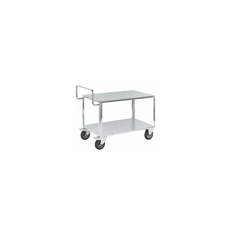 Carrello di montaggio ESD, 2 ripiani, superficie d'appoggio lungh. x largh. 1250 x 800 mm. Fornitura = montato. Numero piani = 2 pz. Lunghezza superficie di carico = 1250 mm. Larghezza superficie di carico = 800 mm. Colore = zincatura. Materiale superficie di carico = acciaio, zincato. Altezza di lavoro = 895 mm. Portata = 500 kg. Altezza ripiani = 275 / 895 mm. Lunghezza = 1395 mm. Larghezza = 800 mm. Altezza = 1120 mm. Tipo di prodotto = carrelli di montaggio ESD. Dotazione ruote = 2 rotelle pivottanti con fermo, 2 rotelle a supporto fisso. Versione ruote = gomma piena. Diametro ruote = 200 mm. Cuscinetti ruota = cuscinetto a rulli. La versione ESD con ruote a conduttività elettrica impedisce il danneggiamento di apparecchi delicati. Altezza di lavoro ergonomica per lavorare oggetti ingombranti e pesanti. Elevata protezione anticorrosione dei ripiani grazie all'acciaio zincato. La struttura saldata in acciaio offre elevata stabilità e durata. I freni di stazionamento mantengono il