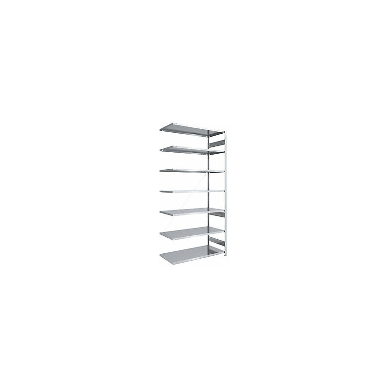 Scaffale lungo a innesto, zincato, altezza 3000 mm, portata campata 1700 kg, versione leggera, scaffale aggiuntivo, largh. x prof. 1300 x 800 mm. Fornitura = smontato. Colore montanti = zincatura. Altezza scaffale = 3000 mm. Versione di scaffale = un lato utile. Tipo di scaffale = scaffale aggiuntivo. Materiale = acciaio, zincato. Struttura = a innesto. Passo di regolazione altezza ripiani = 25 mm. Profondità totale = 835 mm. Larghezza totale = 1310 mm. Portata campata = 1700 kg. Portata ripiani = 190 kg. Colore ripiani = zincatura. Profondità ripiani = 800 mm. Larghezza ripiani = 1300 mm. Numero ripiani = 7 pz. Tipo di prodotto = scaffali a innesto a campata larga. 30% di spazio in più grazie alla larghezza ripiani di 1300 mm - larghezza utile tra i montanti = 1250 mm. Ideali per l'impiego con merci ingombranti e contenitori di dimensioni Euro. Su un ripiano possono essere posizionati affiancati tre contenitori larghi 400 mm ciascuno. Con zincatura. Ripiani regolabili in altezza con