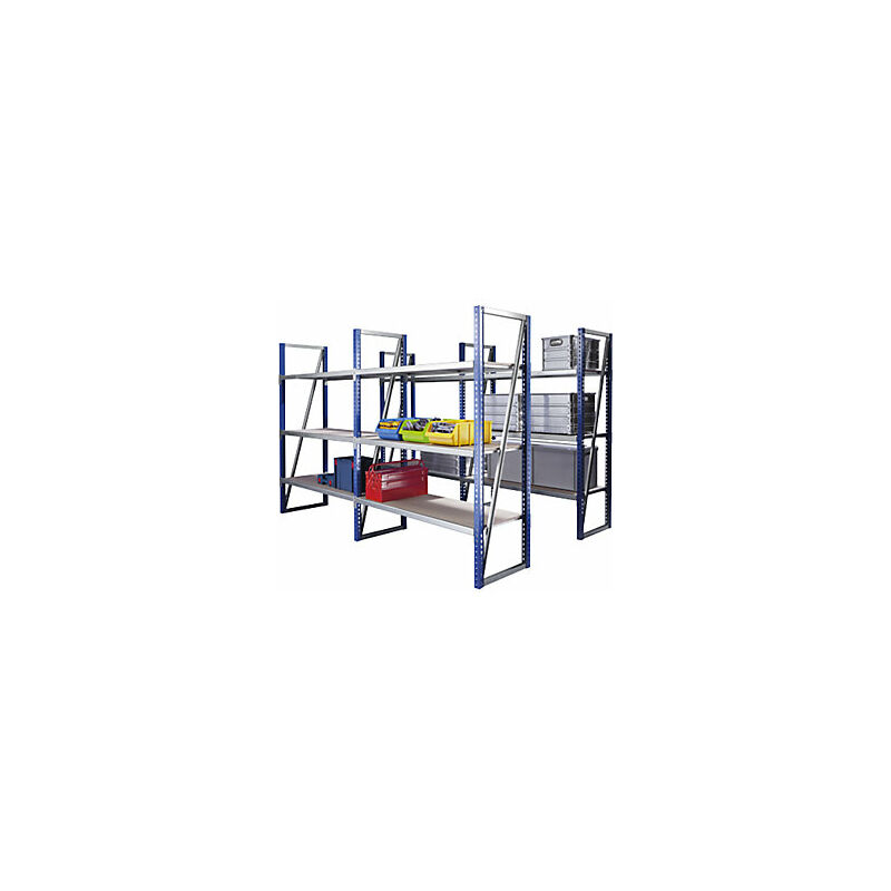 Scaffale a innesto a campata larga, larghezza ripiano 1500 mm, altezza scaffale 2510 mm, profondità ripiano 600 mm, scaffale aggiuntivo, zincato. Fornitura = smontato. Colore montanti = zincatura. Altezza scaffale = 2510 mm. Tipo di scaffale = scaffale aggiuntivo. Materiale = acciaio, zincato. Struttura = a innesto. Passo di regolazione altezza ripiani = 40 mm. Profondità totale = 600 mm. Larghezza totale = 1550 mm. Portata campata = 1600 kg. Portata ripiani = 350 kg. Materiale ripiani = pannello in truciolato, V20, E1. Profondità ripiani = 600 mm. Larghezza ripiani = 1500 mm. Numero ripiani = 4 pz. Tipo di prodotto = scaffali a innesto a campata larga. Montanti zincati o con verniciatura colorata. Ripiani con traverse zincate e pannelli in truciolato inseriti a filo. Ripiani regolabili con passo di 40 mm. Montanti Facile montaggio a innesto. Ripiani Traverse zincate con ripiani in truciolato inseriti a filo (V20, E1, spessore 19 mm) e rinforzi zincati. Altezza totale 53 mm. Passo