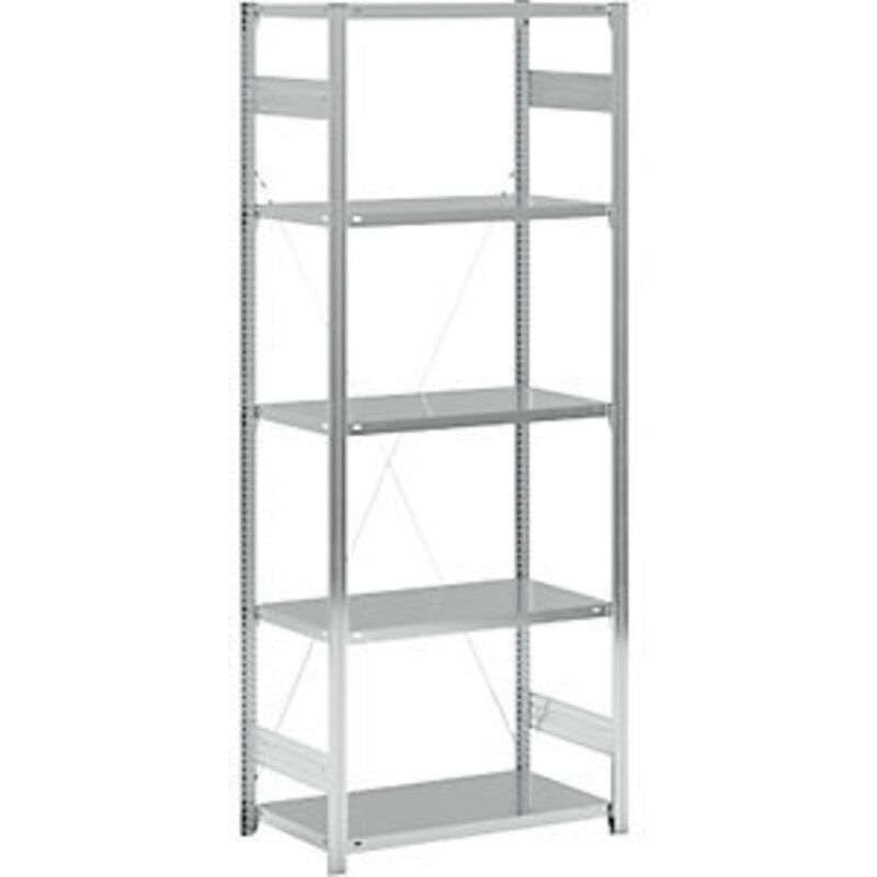 Scaffale a innesto a ripiani, zincato, un lato utile, altezza scaffale 2350 mm, larghezza ripiano 965 mm, scaffale portante, profondità ripiano 550 mm. Fornitura = smontato. Tipo di scaffale = scaffale portante. Numero ripiani = 5 pz. Profondità ripiani = 550 mm. Portata ripiani = 140 kg. Altezza scaffale = 2350 mm. Larghezza totale = 1025 mm. Portata campata = 1000 kg. Struttura = a innesto. Colore montanti = zincatura. Larghezza ripiani = 965 mm. Profondità totale = 585 mm. Superficie = zincatura. Passo di regolazione altezza ripiani = 25 mm. Colore ripiani = zincatura. Versione di scaffale = un lato utile. Robusto scaffale a innesto in acciaio con ripiani zincati. Montaggio facile. Regolazione in altezza senza viti e senza attrezzi dei ripiani con passo di 25 mm. Possibilità di combinare elementi di base e aggiuntivi. Numero variabile di ripiani e di profondità del fondo. Configurazione in base al carico. Montaggio a pavimento incluso nella fornitura. Lo scaffale a innesto con