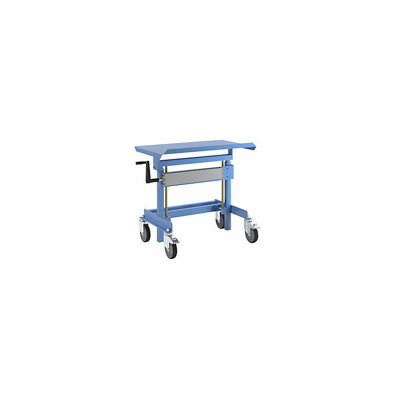 Carrello portamateriale, portata 250 kg, blu chiaro. Fornitura = montato. Portata = 250 kg. Lunghezza piattaforma = 750 mm. Larghezza piattaforma = 450 mm. Campo di regolazione altezza = 670 - 970 mm. Angolo d'inclinazione = 0° - 30°. Regolazione dell'inclinazione = inclinabile in 3 posizioni con passo di 10°. Tipo di regolazione dell'altezza = regolabile in modo continuo mediante pompa idraulica a manovella. Versione = mobile. Colore telaio = blu chiaro RAL 5012. Dotazione ruote = 4 rotelle pivottanti, di cui 2 con fermo doppio. Versione ruote = gomma piena antitraccia. Diametro ruote = 125 mm. Tipo di prodotto = carrelli portamateriale. Inclinabili e mobili - personalizzabili in modo flessibile in base alle proprie esigenze. Per contenitori fino a ca. 890 x 560 mm. Regolabili in altezza sotto carico. Molto maneggevoli grazie alle 4 rotelle pivottanti. I freni di stazionamento mantengono il carrello saldamente in posizione. Piattaforma con bordino anticaduta. Bloccabile in posizione e