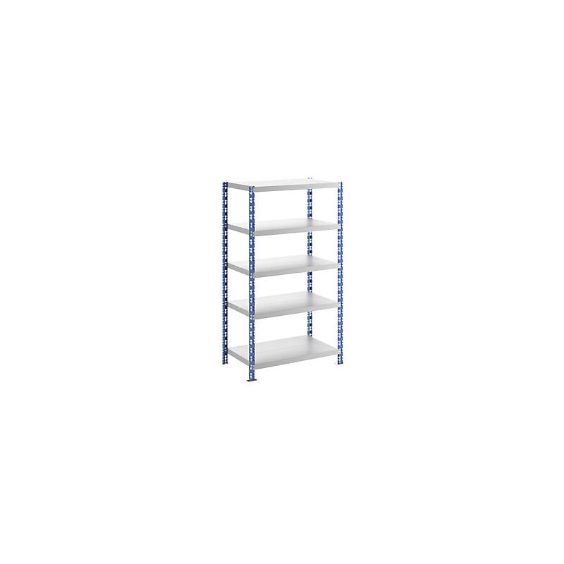 Scaffale a innesto universale, stabile, ripiani in lamiera d'acciaio, alt. x largh. x prof. 1820 x 1050 x 600 mm, scaffale portante. Fornitura = smontato. Tipo di scaffale = scaffale portante. Numero ripiani = 5 pz. Profondità ripiani = 600 mm. Portata ripiani = 450 kg. Altezza scaffale = 1820 mm. Larghezza totale = 1050 mm. Portata campata = 2250 kg. Struttura = a innesto. Colore montanti = blu traffico RAL 5017. Larghezza ripiani = 1000 mm. Profondità totale = 600 mm. Materiale = acciaio. Passo di regolazione altezza ripiani = 75 mm. Materiale ripiani = lamiera d'acciaio. Con ripiani in lamiera d'acciaio. Ottimo rapporto qualità prezzo. Montaggio a innesto semplice e rapido. Accurata verniciatura plastica. Ottimo sfruttamento dello spazio grazie a ripiani in tre diverse profondità e scaffali in quattro altezze. Ideali per magazzini, uffici, archivi, officine. Passo di regolazione ripiani 75 mm. I telai portanti sono dotati di piastre di base zincate (98 x 51 mm) che aumentano