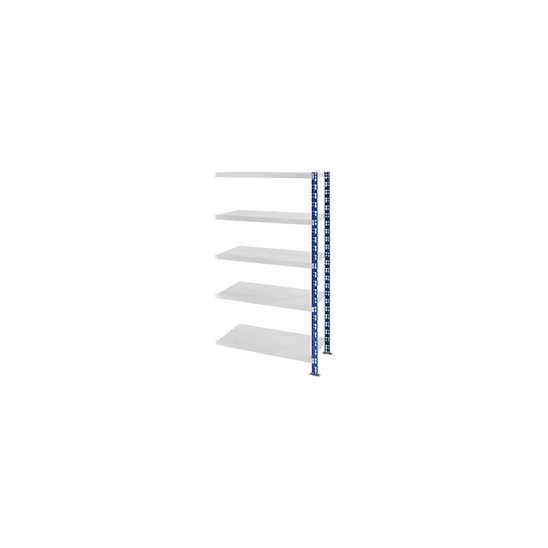 Scaffale a innesto universale, stabile, ripiani in lamiera d'acciaio, alt. x largh. x prof. 1820 x 1025 x 600 mm, scaffale aggiuntivo. Fornitura = smontato. Tipo di scaffale = scaffale aggiuntivo. Numero ripiani = 5 pz. Profondità ripiani = 600 mm. Portata ripiani = 450 kg. Altezza scaffale = 1820 mm. Larghezza totale = 1025 mm. Portata campata = 2250 kg. Struttura = a innesto. Colore montanti = blu traffico RAL 5017. Larghezza ripiani = 1000 mm. Profondità totale = 600 mm. Materiale = acciaio. Passo di regolazione altezza ripiani = 75 mm. Materiale ripiani = lamiera d'acciaio. Con ripiani in lamiera d'acciaio. Ottimo rapporto qualità prezzo. Montaggio a innesto semplice e rapido. Accurata verniciatura plastica. Ottimo sfruttamento dello spazio grazie a ripiani in tre diverse profondità e scaffali in quattro altezze. Ideali per magazzini, uffici, archivi, officine. Passo di regolazione ripiani 75 mm. I telai portanti sono dotati di piastre di base zincate (98 x 51 mm) che aumentano