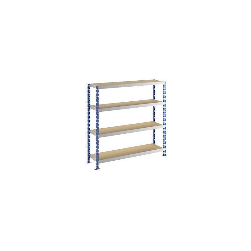 Scaffale a innesto a campata larga con ripiani in pannelli di truciolato, profondità 400 mm, scaffale portante, alt. x largh. 1508 x 1550 mm. Fornitura = smontato. Colore montanti = blu traffico RAL 5017. Altezza scaffale = 1508 mm. Versione di scaffale = un lato utile. Tipo di scaffale = scaffale portante. Materiale = acciaio. Struttura = a innesto. Passo di regolazione altezza ripiani = 75 mm. Profondità totale = 400 mm. Larghezza totale = 1550 mm. Portata campata = 800 kg. Portata ripiani = 200 kg. Materiale ripiani = truciolato. Colore ripiani = grigio chiaro RAL 7035. Profondità ripiani = 400 mm. Larghezza ripiani = 1500 mm. Numero ripiani = 4 pz. Luogo d'impiego = per interni. Tipo di prodotto = scaffali a innesto a campata larga. Ottimo rapporto qualità prezzo. Accurata verniciatura plastica. Passo di regolazione ripiano 75 mm. Ottimo sfruttamento dello spazio grazie a ripiani in cinque diverse profondità e scaffali in quattro altezze. Ideali per magazzini, uffici, archivi