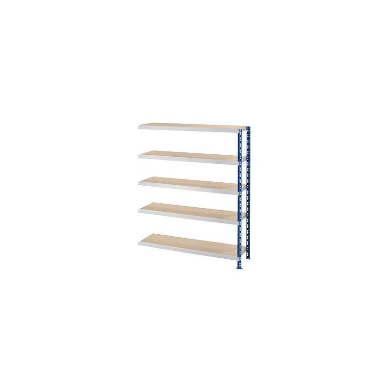 Scaffale a innesto a campata larga con ripiani in pannelli di truciolato, profondità 500 mm, scaffale aggiuntivo, alt. x largh. 1820 x 1525 mm. Fornitura = smontato. Colore montanti = blu traffico RAL 5017. Altezza scaffale = 1820 mm. Versione di scaffale = un lato utile. Tipo di scaffale = scaffale aggiuntivo. Materiale = acciaio. Struttura = a innesto. Passo di regolazione altezza ripiani = 75 mm. Profondità totale = 500 mm. Larghezza totale = 1525 mm. Portata campata = 1000 kg. Portata ripiani = 200 kg. Materiale ripiani = truciolato. Colore ripiani = grigio chiaro RAL 7035. Profondità ripiani = 500 mm. Larghezza ripiani = 1500 mm. Numero ripiani = 5 pz. Luogo d'impiego = per interni. Tipo di prodotto = scaffali a innesto a campata larga. Ottimo rapporto qualità prezzo. Accurata verniciatura plastica. Passo di regolazione ripiano 75 mm. Ottimo sfruttamento dello spazio grazie a ripiani in cinque diverse profondità e scaffali in quattro altezze. Ideali per magazzini, uffici, archivi
