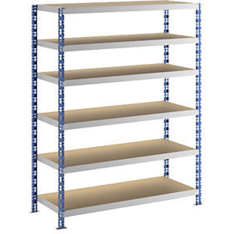 Scaffale a innesto a campata larga con ripiani in pannelli di truciolato, profondità 600 mm, scaffale portante, alt. x largh. 1976 x 1550 mm. Fornitura = smontato. Colore montanti = blu traffico RAL 5017. Altezza scaffale = 1976 mm. Versione di scaffale = un lato utile. Tipo di scaffale = scaffale portante. Materiale = acciaio. Struttura = a innesto. Passo di regolazione altezza ripiani = 75 mm. Profondità totale = 600 mm. Larghezza totale = 1550 mm. Portata campata = 1200 kg. Portata ripiani = 200 kg. Materiale ripiani = truciolato. Colore ripiani = grigio chiaro RAL 7035. Profondità ripiani = 600 mm. Larghezza ripiani = 1500 mm. Numero ripiani = 6 pz. Luogo d'impiego = per interni. Tipo di prodotto = scaffali a innesto a campata larga. Ottimo rapporto qualità prezzo. Accurata verniciatura plastica. Passo di regolazione ripiano 75 mm. Ottimo sfruttamento dello spazio grazie a ripiani in cinque diverse profondità e scaffali in quattro altezze. Ideali per magazzini, uffici, archivi