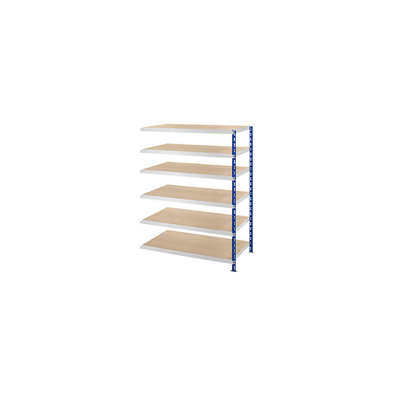 Scaffale a innesto a campata larga con ripiani in pannelli di truciolato, profondità 800 mm, scaffale aggiuntivo, alt. x largh. 1976 x 1525 mm. Fornitura = smontato. Colore montanti = blu traffico RAL 5017. Altezza scaffale = 1976 mm. Versione di scaffale = un lato utile. Tipo di scaffale = scaffale aggiuntivo. Materiale = acciaio. Struttura = a innesto. Passo di regolazione altezza ripiani = 75 mm. Profondità totale = 800 mm. Larghezza totale = 1525 mm. Portata campata = 1200 kg. Portata ripiani = 200 kg. Materiale ripiani = truciolato. Colore ripiani = grigio chiaro RAL 7035. Profondità ripiani = 800 mm. Larghezza ripiani = 1500 mm. Numero ripiani = 6 pz. Luogo d'impiego = per interni. Tipo di prodotto = scaffali a innesto a campata larga. Ottimo rapporto qualità prezzo. Accurata verniciatura plastica. Passo di regolazione ripiano 75 mm. Ottimo sfruttamento dello spazio grazie a ripiani in cinque diverse profondità e scaffali in quattro altezze. Ideali per magazzini, uffici, archivi