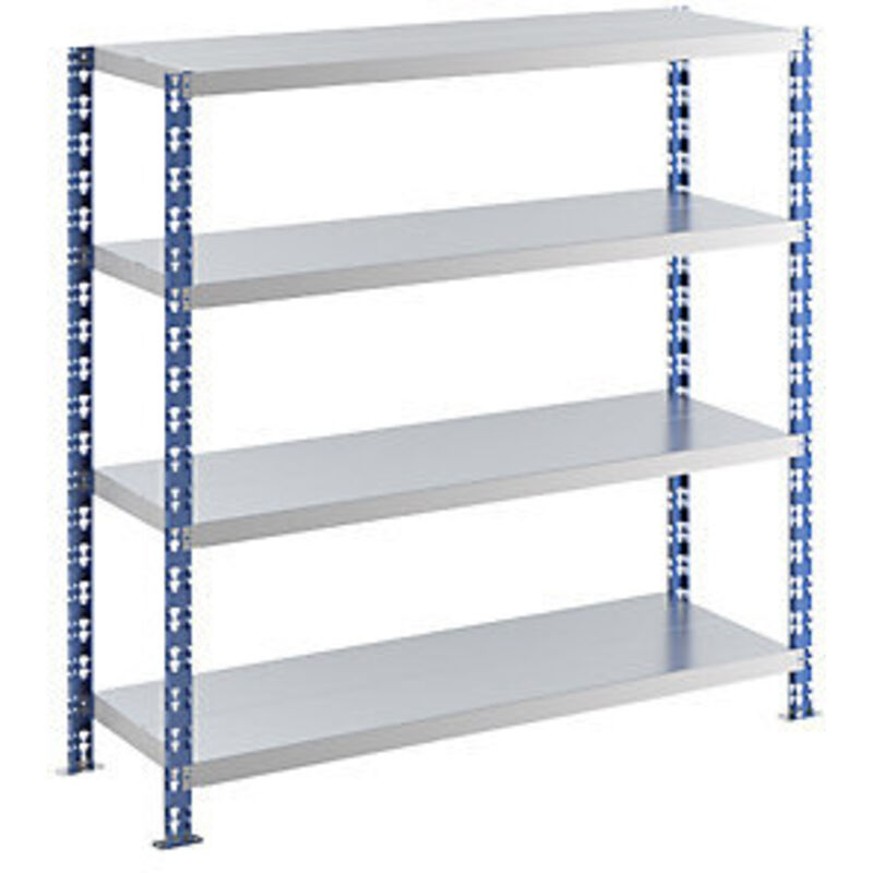 Scaffale a innesto a campata larga con ripiani in lamiera d'acciaio, profondità 500 mm, scaffale portante, alt. x largh. 1508 x 1550 mm. Fornitura = smontato. Colore montanti = blu traffico RAL 5017. Altezza scaffale = 1508 mm. Versione di scaffale = un lato utile. Tipo di scaffale = scaffale portante. Materiale = acciaio. Struttura = a innesto. Passo di regolazione altezza ripiani = 75 mm. Profondità totale = 500 mm. Larghezza totale = 1550 mm. Portata campata = 800 kg. Portata ripiani = 200 kg. Materiale ripiani = lamiera d'acciaio. Profondità ripiani = 500 mm. Larghezza ripiani = 1500 mm. Numero ripiani = 4 pz. Luogo d'impiego = per interni. Tipo di prodotto = scaffali a innesto a campata larga. Ottimo rapporto qualità prezzo. Accurata verniciatura plastica. Ottimo sfruttamento dello spazio grazie a ripiani in cinque diverse profondità e scaffali in quattro altezze. Ideali per magazzini, uffici, archivi, officine. Passo di regolazione ripiano 75 mm. Montaggio a innesto semplice e