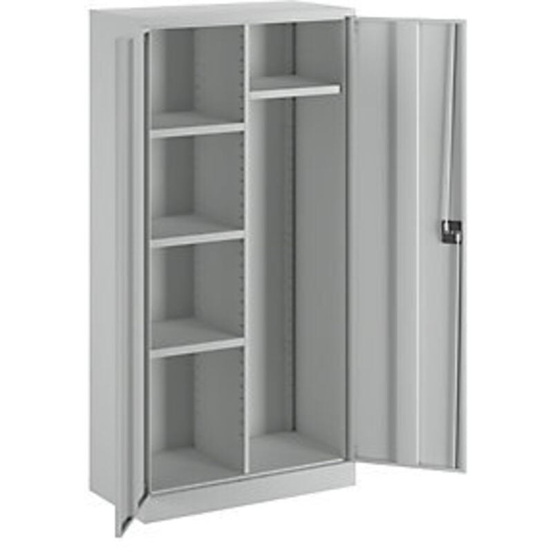L'armadio in acciaio con zoccolino è la soluzione perfetta per organizzare e proteggere i tuoi effetti personali o professionali in modo sicuro. Con un design elegante in grigio chiaro e una struttura robusta in lamiera d'acciaio verniciata a polvere, questo armadio è perfetto per stabilimenti, officine, magazzini e uffici. Dotato di 1 asta appendiabiti e 3 ripiani regolabili, puoi personalizzare lo spazio interno per adattarlo alle tue esigenze. La serratura a cilindro girevole garantisce la massima sicurezza e ti permette di tenere al sicuro i tuoi documenti e oggetti di valore. Con dimensioni di 1830 x 915 x 460 mm, questo armadio spazioso offre ampio spazio di archiviazione. Facile da montare grazie al sistema a innesto e fornito con 2 chiavi, potrai usufruire di una soluzione pratica e resistente per organizzare al meglio il tuo spazio di lavoro. Con una capacità di carico di circa 30 kg per ripiano, potrai conservare tutti i tuoi oggetti in modo ordinato e accessibile.