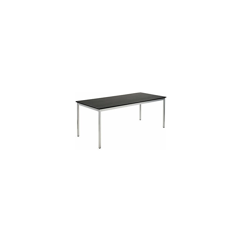Tavolo multiuso, forma rettangolare, alt. x largh. x prof. 740 x 1800 x 800 mm, piano in simil-frassino grigio scuro, telaio alluminio brillante. Fornitura = smontato. Colore telaio = alluminio brillante RAL 9006. Materiale telaio = tubo d'acciaio a sezione quadra. Colore piano = simil-frassino, grigio scuro. Tipo di piano = truciolato con verniciatura in resina melamminica. Spessore piano = 19 mm. Versione telaio = basamento a 4 gambe. Altezza = 740 mm. Larghezza = 1800 mm. Profondità = 800 mm. Forma = rettangolare. Tipo di prodotto = tavoli polifunzionali. Piano del tavolo con verniciatura in resina melamminica dello spessore di 19 mm e bordi in ABS dello spessore di 3 mm. Telaio in tubi quadri d'acciaio con piedini a vite per la messa in piano. Gambe del tavolo 30 x 30 mm, traversa 50 x 20 mm. Altezza 740 mm. In molte varianti di colore - Piano e telaio beige / gambe marrone RAL 8028 - Piano e telaio grigio chiaro / gambe grigio basalto RAL 7012 - Piano in simil-faggio