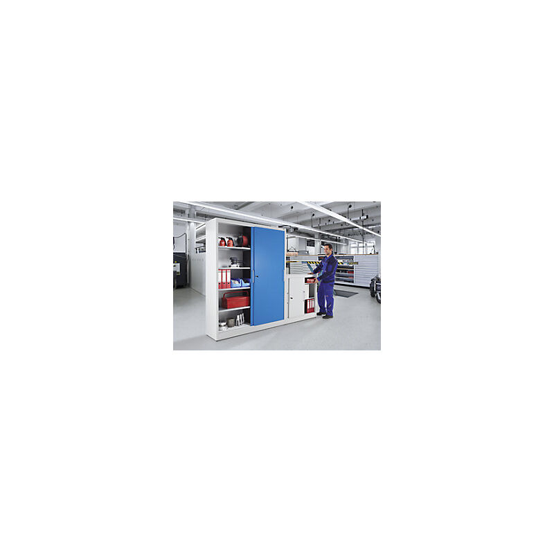 L'armadietto con ante scorrevoli è l'ideale per soddisfare le esigenze di stoccaggio e magazzinaggio in azienda, ufficio, magazzino e archivio. Grazie alla sua struttura robusta in lamiera d'acciaio, offre resistenza e durata nel tempo. Le ante scorrevoli con eleganti impugnature e serratura a cilindro garantiscono sicurezza e praticità d'uso. I ripiani zincati regolabili in altezza con una portata di 75 kg ciascuno permettono di organizzare al meglio lo spazio. Con la sua verniciatura a fuoco di qualità, sarà un elemento elegante e funzionale all'interno degli ambienti. Le dimensioni e le caratteristiche tecniche precise rendono questo armadietto una scelta intelligente per chi cerca un prodotto resistente, comodo e dagli spazi ben organizzati. Non perdere l'opportunità di migliorare la tua vita organizzando il tuo spazio con questo armadietto di qualità superiore.