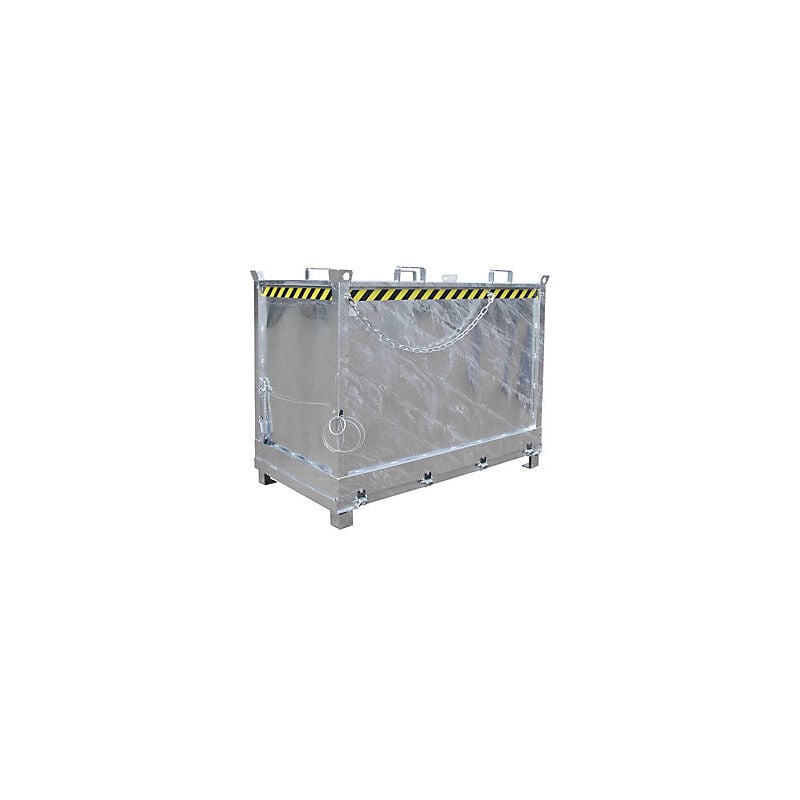 Il contenitore a fondo apribile eurokraft pro è la soluzione ideale per le esigenze di trasporto e stoccaggio. Realizzato in resistente lamiera d'acciaio e con superficie in zincatura a fuoco, questo contenitore offre una capacità di 2,0 m³ e una portata di 1500 kg, garantendo sicurezza e durata nel tempo. Le sue dimensioni di 1040 mm di larghezza, 1845 mm di lunghezza e 1445 mm di altezza lo rendono adatto per una vasta gamma di utilizzi, mentre la facilità d'uso è garantita dalle entrate forche di 100 mm e dalla possibilità di essere impilato su 3 livelli. Inoltre, l'opzione di svuotamento completo tramite fondo apribile mediante fune azionabile dall'elevatore rende questo contenitore estremamente pratico e versatile. Con 4 anelli di sollevamento per gru Ø 40 mm e la possibilità di impiego sotto le macchine grazie all'altezza d'ingombro ridotta, eurokraft pro è la scelta perfetta per migliorare l'efficienza e la praticità delle operazioni di stoccaggio e trasporto. Infine, la
