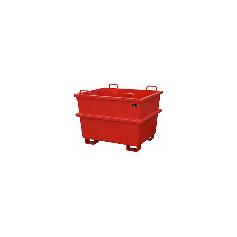 Il contenitore universale eurokraft pro è l'alleato perfetto per la gestione efficiente e sicura dei materiali sfusi, dei rifiuti di lavorazione e dei rifiuti riciclabili. Con una capacità di 0,75 m³ e una portata di 1500 kg, questo contenitore offre massima affidabilità e resistenza. Realizzato in acciaio e con una struttura conica, è ideale per impilare più contenitori l'uno nell'altro, ottimizzando lo spazio e rendendo la logistica più conveniente. Le dimensioni di 1040 mm in lunghezza, 1200 mm in larghezza e 955 mm in altezza, con un'altezza di scarico di 876 mm, lo rendono facilmente gestibile e trasportabile con l'ausilio di carrelli elevatori a forche, transpallet, pale caricatrici, gru. Il colore rosso fuoco RAL 3000 gli conferisce una forte visibilità e una presenza robusta in qualsiasi ambiente. Grazie all'impilabilità e al design conico, questo contenitore non solo semplifica la gestione e il trasporto dei materiali, ma contribuisce anche a ottimizzare lo spazio di