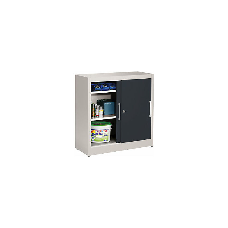L'armadietto con ante scorrevoli di 1000 mm è la soluzione ideale per ottimizzare lo spazio di archiviazione in ufficio, azienda o magazzino. Realizzato in robusta lamiera d'acciaio con finitura in grigio antracite RAL 7016, offre una capacità di portata per ripiano di 75 kg, con 2 ripiani regolabili in altezza per adattarsi alle tue esigenze. Le eleganti impugnature e la serratura a cilindro garantiscono sicurezza e praticità, mentre le ante scorrevoli permettono un'apertura senza ingombro, ottimizzando ulteriormente lo spazio. Con questa soluzione, avrai sempre tutto a portata di mano e potrai organizzare al meglio il tuo spazio di lavoro. Non perdere l'opportunità di migliorare la tua vita professionale con questo armadietto di alta qualità.