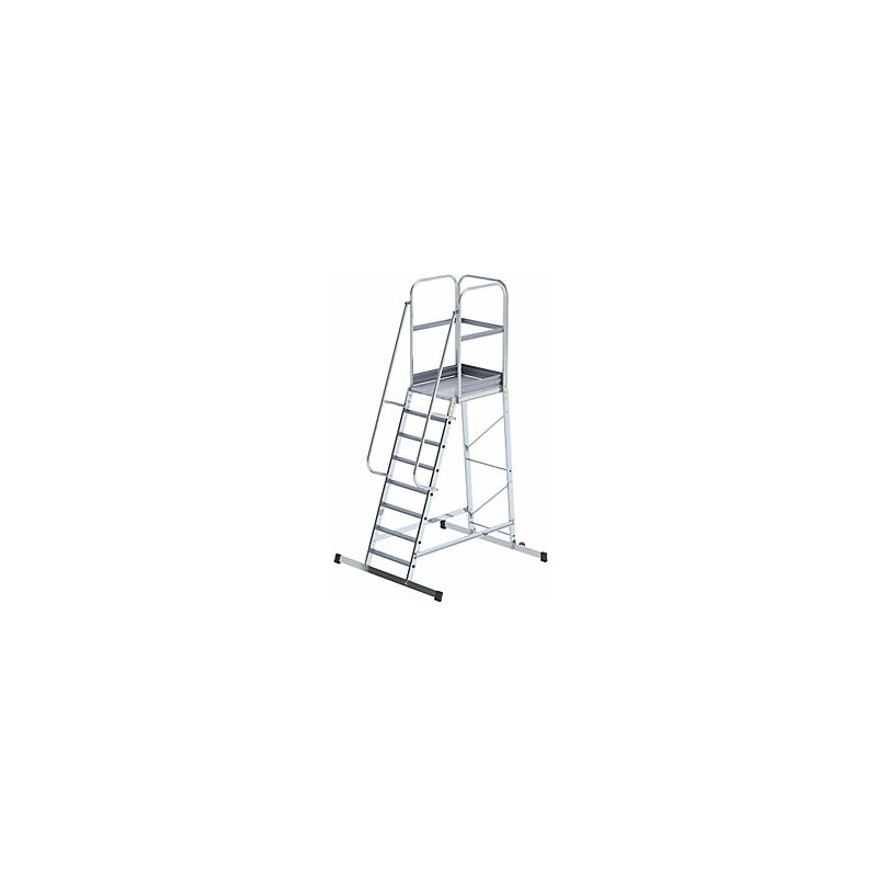 Scala a palchetto in alluminio, con salita da un solo lato, mobile, 8 gradini. Fornitura = smontato. N. gradini, piattaforma inclusa = 8 pz. Materiale telaio = alluminio. Larghezza piattaforma = 600 mm. Profondità piattaforma = 800 mm. Profondità gradini = 80 mm. Salita = su un lato. Versione da salita = gradini. Materiale gradini = alluminio. Altezza piattaforma = 1900 mm. Profondità totale = 1580 mm. Larghezza totale = 1580 mm. Tipo di prodotto = scale a piattaforma. Diametro ruote = 100 mm. Peso = 42 kg. Angolo d'inclinazione = 68°. Piattaforma con parapetto su tre lati, altezza 1,10 m, con traversina a livello del ginocchio. Flangiatura di qualità estremamente stabile. Piedini in plastica antiscivolo e due rotelle a supporto fisso. Due traverse per un appoggio sicuro. Scalini antisdrucciolo. Ampia piattaforma. Si consigliano 2 pezzi. Corrimano come accessorio Da montare a sinistra, a destra e su ambo i lati. Secondo EN 131-7 per la salita su scale a palchetto con pendenza di