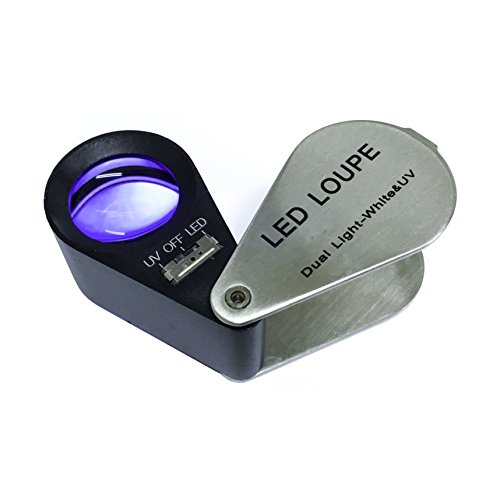 Euromex - Lente d'ingrandimento triplete cromata, pieghevole, 20 x 21 mm, LED bianco e UV