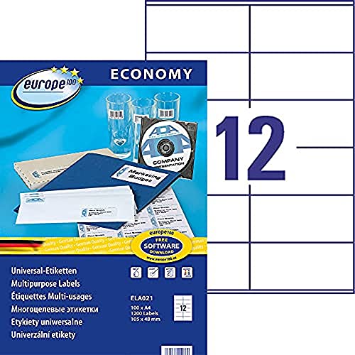 EUROPE 100 1200 etichette, 105x48mm, bianco, multiuso, etichette autoadesive
