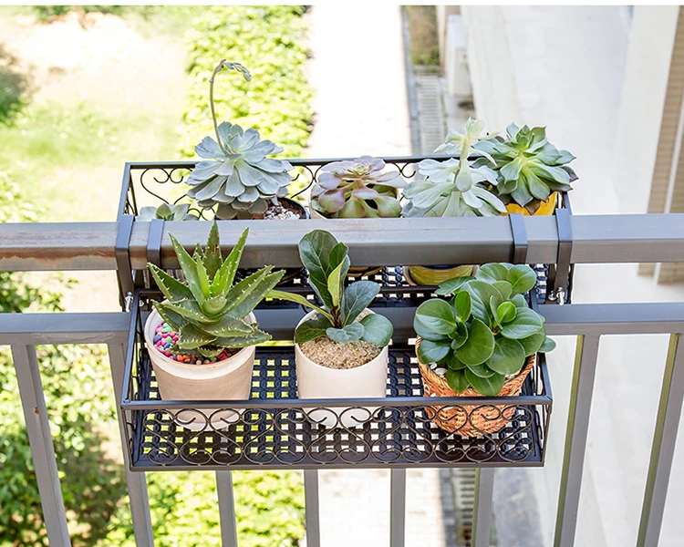 European Balcony Flower Stand Iron Railing Multi-layer Hanging Flower Pot Rack Wall Hanging Green Radish Meat Rack