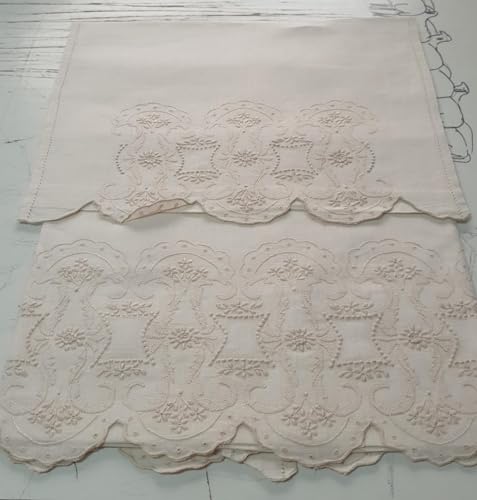 Euroricami Viterbo Coppia Asciugamano + ospite in Canapa di Puro Lino con Ricamo sfilato Siciliano e Frangia Finale