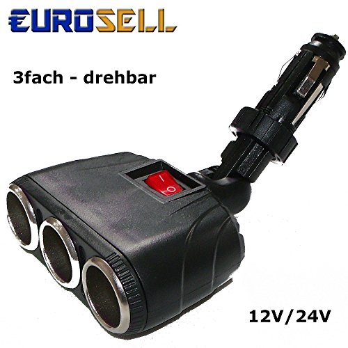 Eurosell, accendisigari da 12/24 Volt, 3 attacchi Y, morbido, distributore per auto e camion;