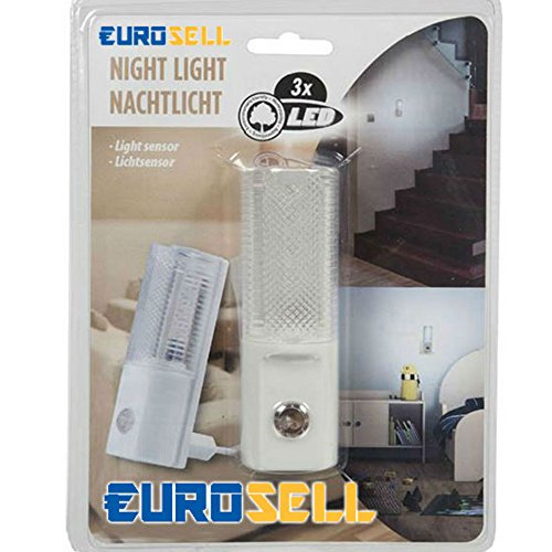 Eurosell 3 LED - On Off automatico - Spina Luce notturna luce notturna con sensore crepuscolare sensore crepuscolare luce guida lampada da notte