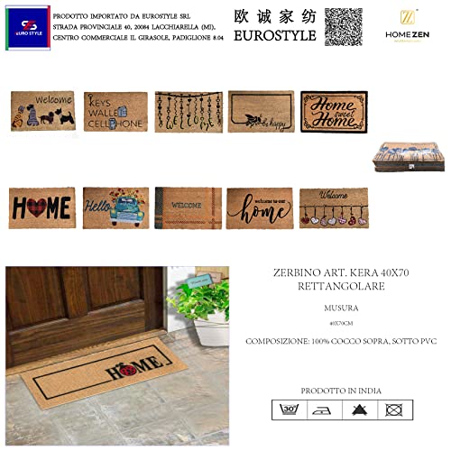 EUROSTYLE Zerbino Art. KERA in Fibra di Cocco Stampato in Fantasia Tappeto Ingresso casa asciuga Passo con Retro PVC Antiscivolo Doormat (40x70cm Rettangolare, Foglie Arancio)