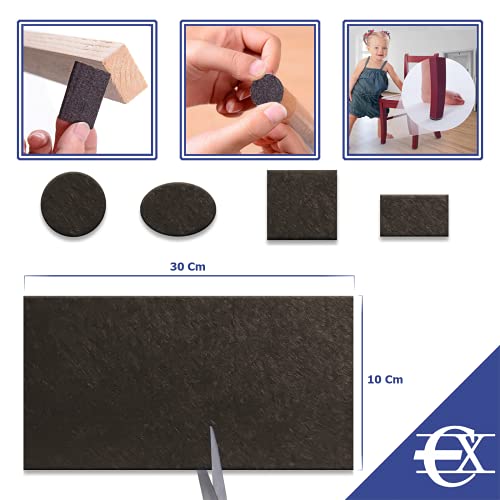 EUROXANTY Feltro adesivo protettivo | Protezione adesiva per basi e gambe di mobili, colore marrone scuro | Singolo | 30 x 10 cm |