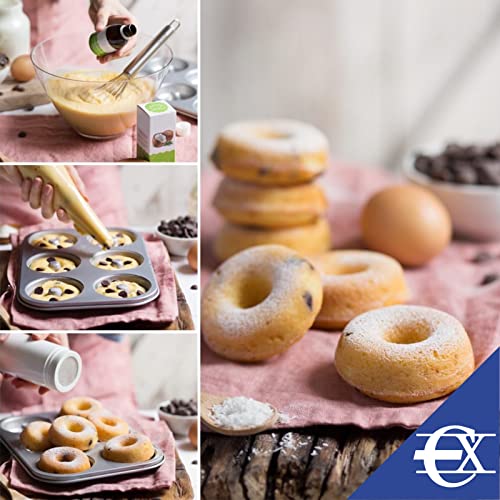 EUROXANTY Stampo per donut | Stampo in acciaio antiaderente | Teglia da forno | Stampo per ciambelle e done | 6 e 12 cavità | 1 stampo da 6 donuts
