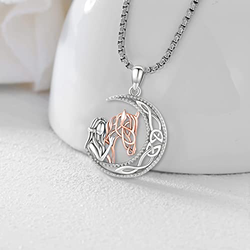 Eusense Cavallo Ragazza Ciondolo Collana in Argento Sterling 925 Cavalli Celtici Luna Oro Rosa Gioielli Regalo per Le Donne