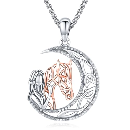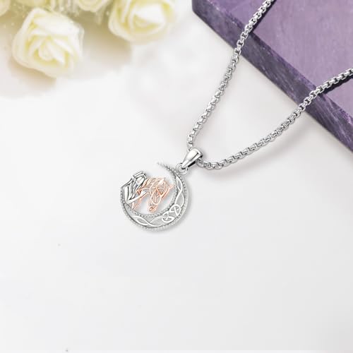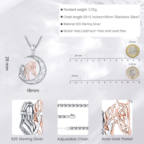 Eusense Cavallo Ragazza Regalo Cavallo Oro Rosa Ciondolo Collana in Argento 925 Cavalli Gioielli per Donne