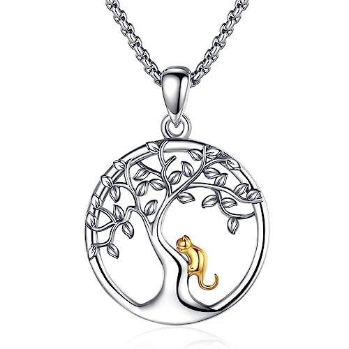 Eusense Collana Gatto Ciondolo con Gatti con Albero in Argento 925 Graziosi Gioielli con Animali per Donne Ragazze