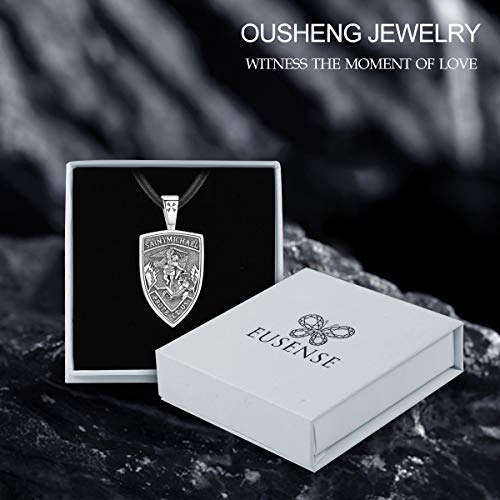 Eusense Collana San Michele Arcangelo/San Cristoforo/Crocifisso/Santa Vergine Maria Ciondolo Argento 925 Protezione Angelo Custode Amuleto Regalo Gioielli per Uomo Donna (SAN MIGUEL-J)