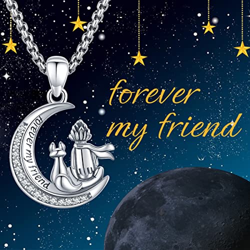 Eusense Collana con Volpe Regalo, Ciondolo Luna Forever My Friend, Gioielli Volpe Ragazzo in Argento Sterling 925 per Donne Ragazze