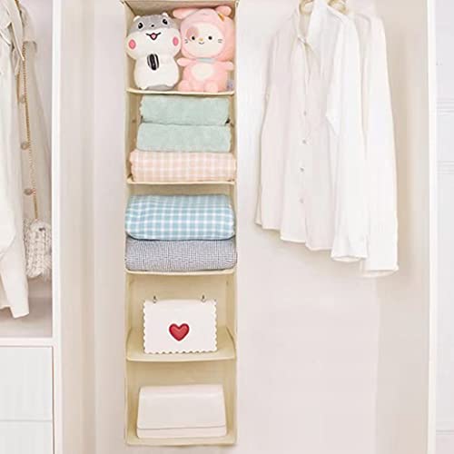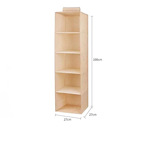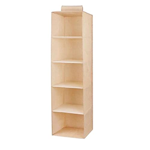 Eushine Organizer Armadio da Appendere, 27 x 27 x 100 cm Organizer Armadio, Portatutto da Appendere con 5 Scomparti, Organizer da Appendere nell'armadio, Beige