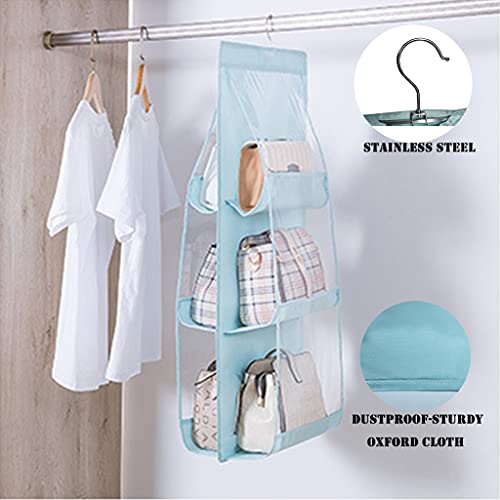 Eushine Organizer per borsette da appendere, 6 Tasche Traspiranti Storage Bag con Gancio, Organizer per borsette da Appendere per Soggiorno Camera da latto la Casa(Azzurro)