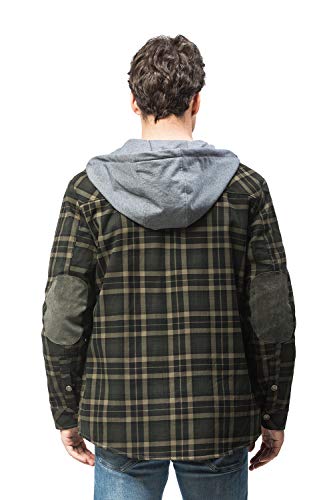 EUSMTD Uomo Sciolto Scozzese Manica Lunga Casual Camicia Imbottita da Lavoro Giacca con Cappuccio 3252 Green L