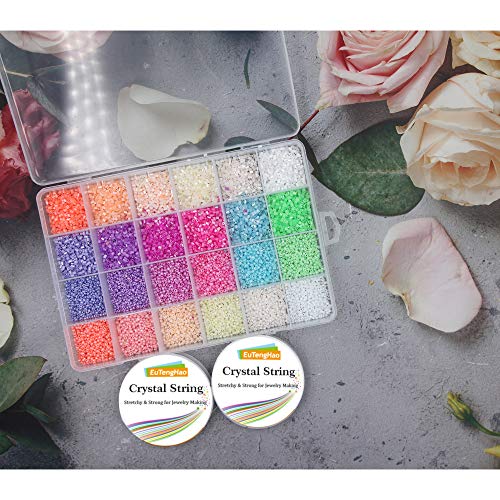EuTengHao 16800 pezzi tubo di vetro perline e piccole perline kit con braccialetto stringa Bugle distanziatori per braccialetti fai da te collane artigianato decorazioni gioielli (2 mm, 24 colori)