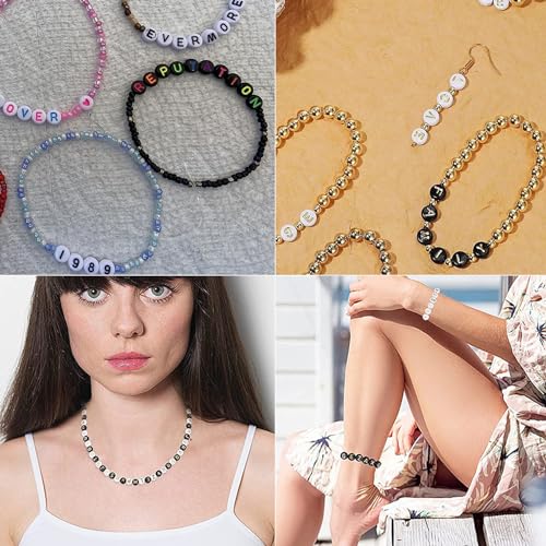 Set di perline nere a forma di lettera bianca】 Questo set ha 1000pcs perline, che includono 35 ciascuno di lettere A-Z perline, 45pcs facce sorridenti perline e 45pcs cuori perline. Dimensioni delle perline dell'alfabeto: diametro=7mm/0,27 pollici, altezza=4mm/0,16 pollici, foro=1mm/0,04 pollici.