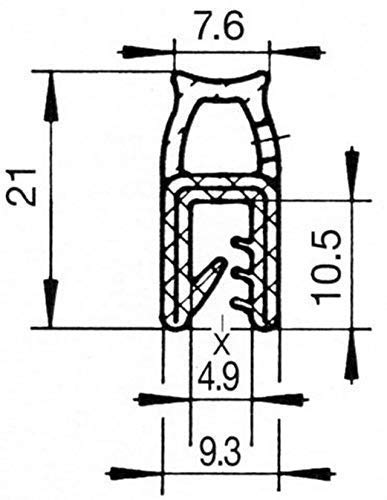EUTRAS profilo guarnizione KSD2006 guarnizione in gomma guarnizione portiera auto campo di serraggio 2,0 - 4,0 mm venduto al metro