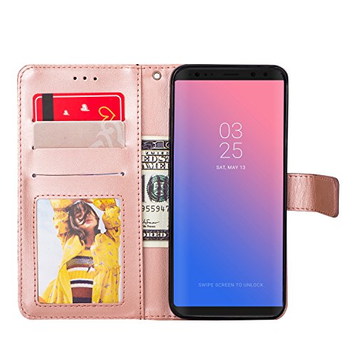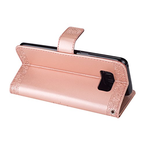 EUWLY Custodia Cover Compatibile con Galaxy S8, Custodia Pelle Premium PU con Ultra Sottile Gel Silicone Case Modello Goffratura Totem Fiore Design Mandala PU Leather Wallet Flip Stand Cover,Oro Rosa