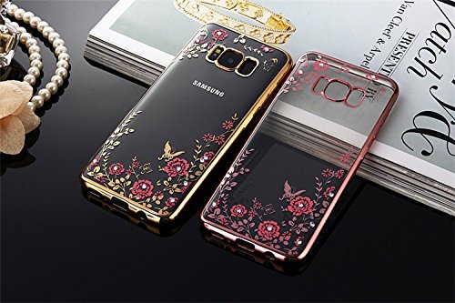 EUWLY Custodia Cover per Samsung Galaxy Note 8, EUWLY Bello Fiore Farfalla Diamond Shine Crystal Rhinestone Glitter TPU Silicone Custodia per Samsung Galaxy Note 8 Trasparente Ultra Sottile Cover Case Anti Scivolo Protezione Copertura Gomma Gel TPU Silicone Custodia Shell Anti-graffio Protezione Cover con Placcatura Telaio e Bling Strass Protezione Case per Samsung Galaxy Note 8+1 x Stilo Penna Touchscreen-Fiori Farfalla,Oro