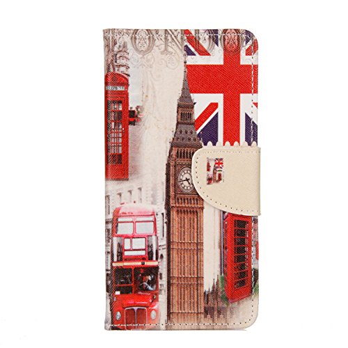 EUWLY Custodia Huawei P Smart/Huawei Enjoy 7S, Cover Huawei Enjoy 7S Originale Portafoglio Custodia in Pelle con Slot per Schede Stile Libro Copertura Protective Flip Cover Case Funzione di Supporto e Chiusura Magnetica Protettiva Pelle Cover Ultra Slim Elegante Colorata PU Leather Wallet Custodia Antiurto Antiscivolo Antigraffio Bumper Shell Fronte Retro Full Body Cover Protettiva Caso Cuoio Guscio del Telefono Cellulare per Huawei P Smart/Huawei Enjoy 7S, Campanile Autobus