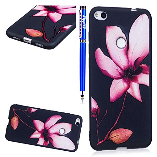 EUWLY Silicone Custodia Per Huawei P8 Lite 2017 Cover TPU Custodia Dipinto Morbido Plastica Custodia Cover Ultra Sottile Slim Protettiva TPU Caso Custodia Morbida Flessibile Protettiva Custodia Cover Antiurto Funzione Custodia Caso Antigraffio Protettivo Custodia Per Huawei P8 Lite 2017+1 x Pen Blu Stylus-lotus