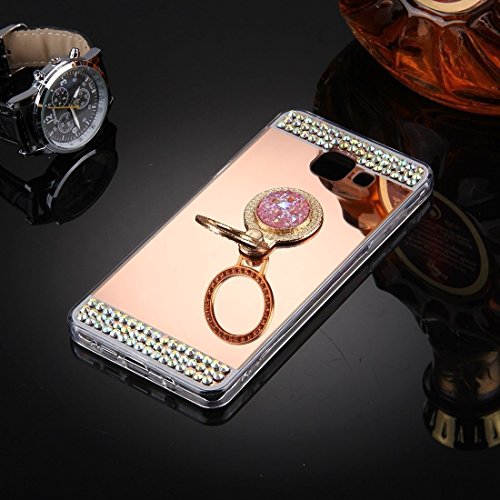 EUWLY Specchio Cover Custodia Per Samsung Galaxy J7 2016 Con 360 Gradi Anello Ring Supporto Rotazione Grip Ring Support Ring Kickstand Custodia, Diamante Bling Brillante Custodia Cristallo Brillante Silicone Protettiva Case Morbido Sottile Gomma Gel TPU Protettivo Copertura Cassa Bumper Per Samsung Galaxy J7 2016 + Stilo Penna Touchscreen-Specchio Oro Rosa