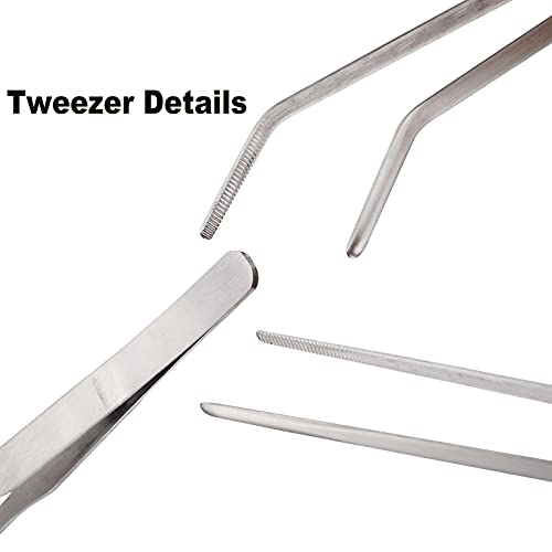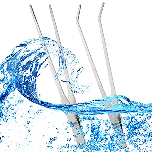 EvaGO - Pinze per alimentazione in acciaio inox, dritte e curve, per acquario, acquario, piante acquatiche, rettili, lucertole, ragni, colore: argento